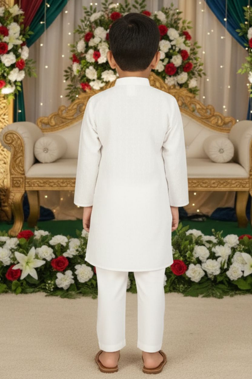 Dress your little prince in timeless elegance with this Soft Pure Cotton Chikankari Kurta Pajama Set — a perfect fusion of comfort, tradition, and style. Made from premium-grade cotton, this set ensures your child stays cool, soft, and comfortable all day long. The fine Chikankari embroidery gives this outfit a rich, graceful appearance — perfect for weddings, Eid celebrations, and festive occasions. The kurta features a smooth cotton lining for added comfort, while the pajama is designed for a relaxed yet stylish fit. Available in five beautiful colors — Yellow, Sky Blue, Pista Green, White, and Baby Pink — this kurta pajama set adds a royal touch to every event. Ethically made and finished with precision stitching, it’s a premium choice that parents trust for quality and style